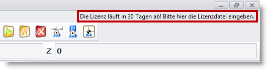 Program cncGraF Pro posiada 30 dniowy okres testowania i może być zarówno w czasie jego trwania jak też po jego upływie odblokowany przy pomocy specjalnego klucza dostępu. Aktualne informacje o tym ukazane są w prawym górnym rogu głównego menu.