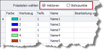 Można tutaj wybierać pomiędzy wektorami a punktami wiercenia (patrz ilustracja nr 2).