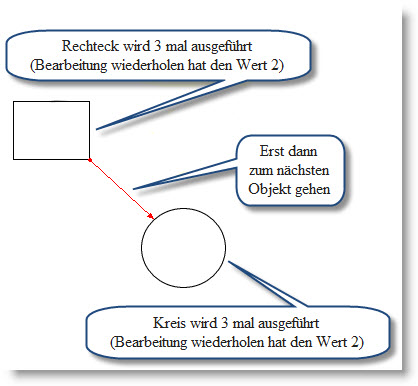 1."Obróbka zorientowana na objekt" zastosowana być może dla danych w 2D. W tym przypadku maszyna najpierw obrabia kompletnie jeden cały objekt, zanim przejdzie do obróbki następnego objektu (patrz przykład u dołu).