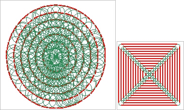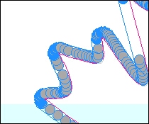Optymalizacja drogi oraz faktor wygładzania dokonują optymalizacji danych jeszcze przed obliczeniem korekty średnicy narzędzia. Zezwala to na dokładne obliczenie ścieżek obróbki nawet dla skomplikowanych przypadków. W plikach zawierających dużą liczbę małych wektorów faktor wygładzania powinien być ustawiony pomiędzy 15 i 45. Faktor wygładzania zmienia dane wygenerowane przy pomocy korekty średnicy narzędzia (por. ilustracja 4). Oryginalne wektory nie zostają jednak zmodyfikowane. Im wyższy jest faktor wygładzania, tym mniejsza jest liczba małych wektorów, a w konsekwencji zgrubna korekta średnicy narzędzia.