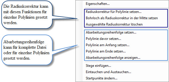 •Radiuskorrektur setzen (besteht aus mehreren Funktionen, siehe Abbildung oben)