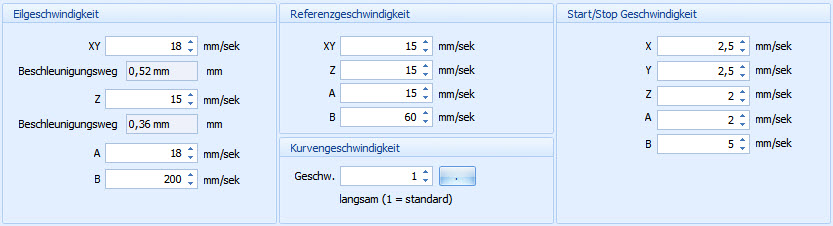 Zunächst sollten Sie die Referenzgeschwindigkeit festlegen und anschließend die Eilgeschwindigkeit sowie die Start/Stop Geschwindigkeit.